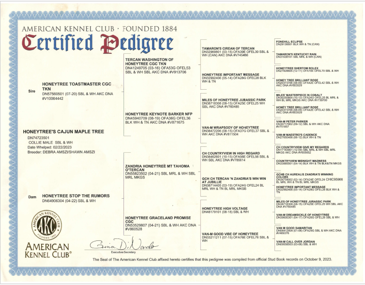 Sire: Honeytree Toast Master CGC TKN