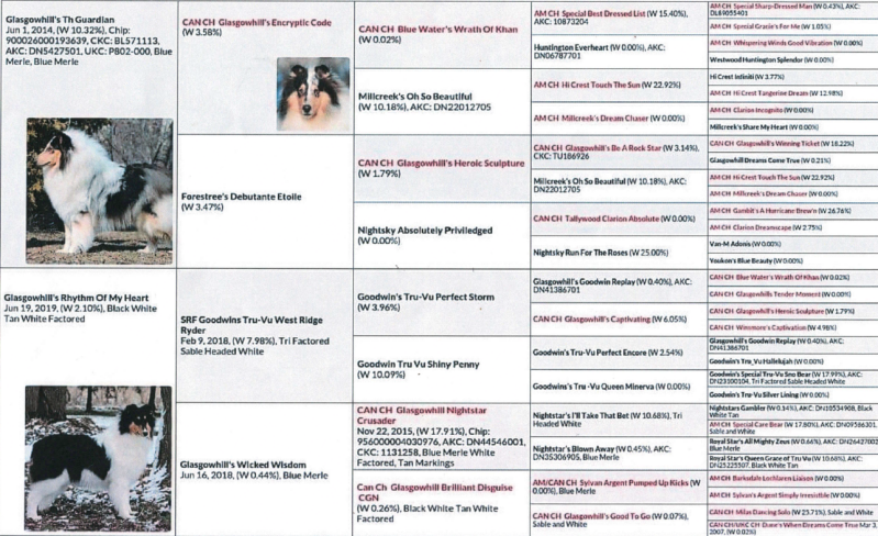 Sable & Whites, Tri Colors ,& White color heads all Rough Coats.